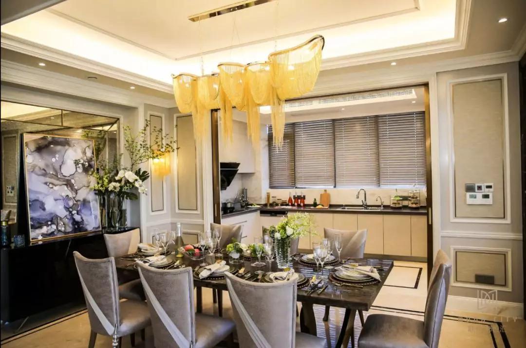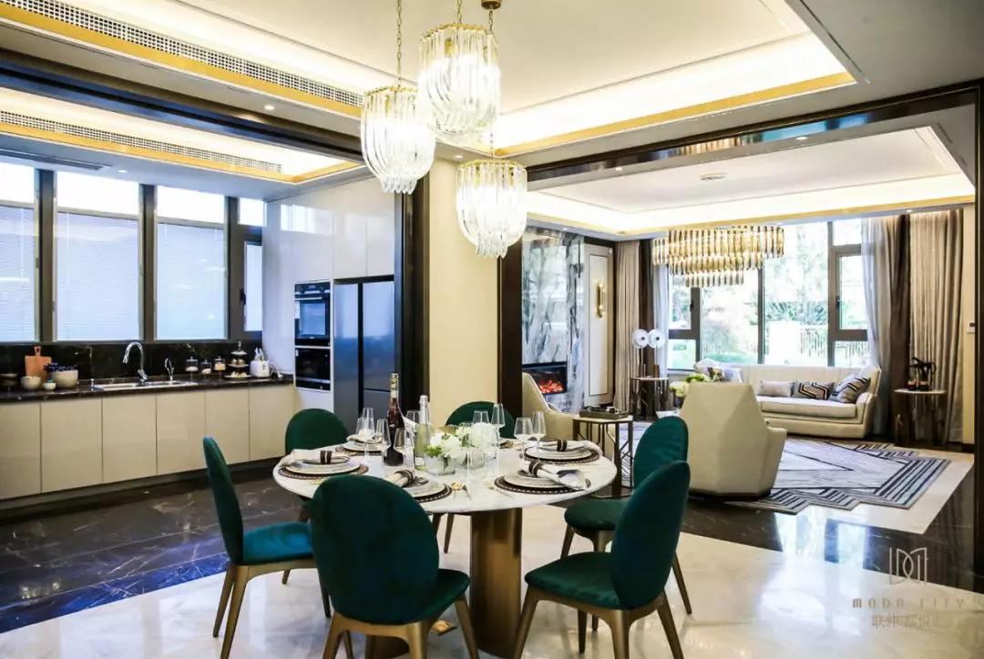 12.5平U型的大厨房连接近23.5平餐厅,整个一层都在彰示大尺度带来的舒适感。