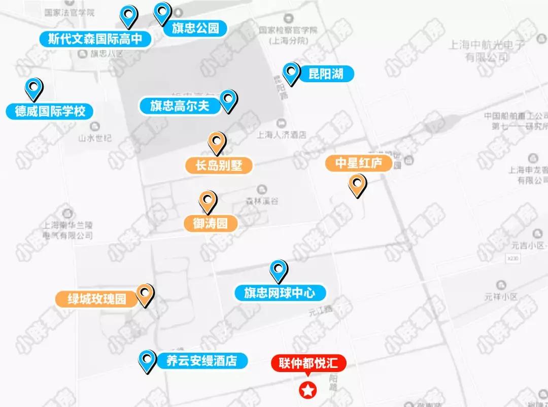 板块以低容积率、生态自然环境和高端国际品牌配置,2010年被列为上海第二批大型居住社区之一。总建面约33万方城市综合体联仲都悦汇位于旗忠板块正核心,紧临网球中心,超10万方市政绿化所环绕。