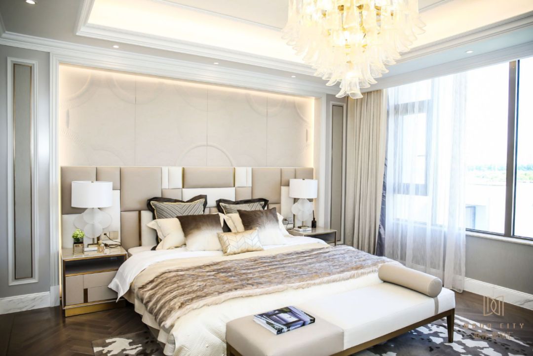 主卧面积整体达到57平,18平衣帽间→起居空间→卫浴间,层层递进,明朗通透。