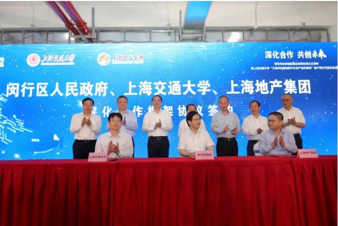 一是上海交通大学副校长王伟明、闵行区副区长吴斌、地产集团副总裁李钟分别代表上海交通大学、闵行区政府、地产集团进行了三方签约。