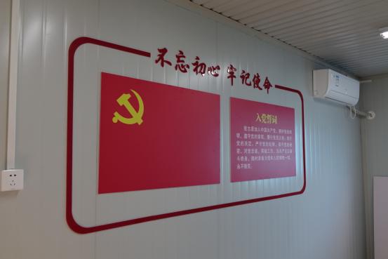 在邹家宅地块动迁基地指挥部,入口处悬挂的“为人民服务”牌匾格外引人注目,两边的“不忘初心、牢记使命”展板给人以时不我待的紧迫感和责无旁贷的使命感。