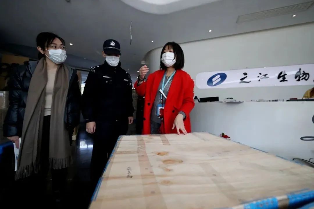 疫情期间,产品大量发往武汉及全国各地的医院、疾控中心。仓库、前台,连走廊通道里都堆积了待发的货物。
