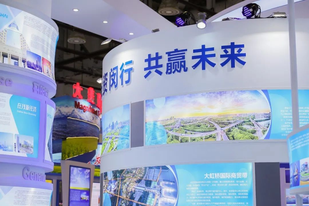 在上海展台左后侧设置闵行专题宣传区,展现了闵行南上海高新智造带、大虹桥国际商贸带的战略发展规划,以及闵行在长三角一体化发展中的战略承载功能和“家门口”的进博会溢出带动效应,让客商全方位体会闵行在经济、产业、外资等多领域中的优势和特色,取得了良好的展示效果,吸引大量客商前来咨询洽谈。