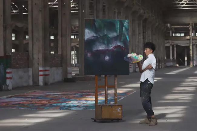 彝族青年艺术家在金堂这个老厂房创作了上百幅油画!