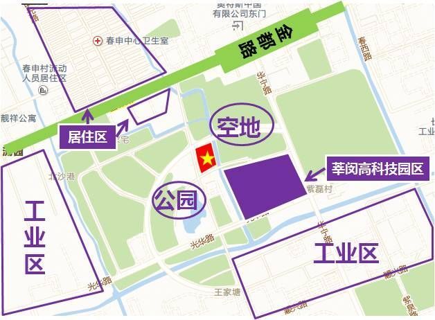 ► 地块现状:该场地原为农业用地,目前北侧、西侧和南侧为绿地和公园,东南侧为上海莘闵高科技园区。