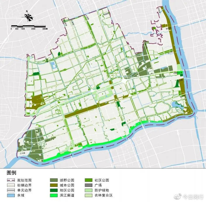 严控生态底线,确保生态空间落实,强化绿色韧性基底。完善绿地结构,提升绿地品质,结合已建地区城市更新及重点地区转型增加各类各级公园,实现多层次全覆盖,构建五级公园体系。秉承生态人文特点,塑造开放活力江岸。