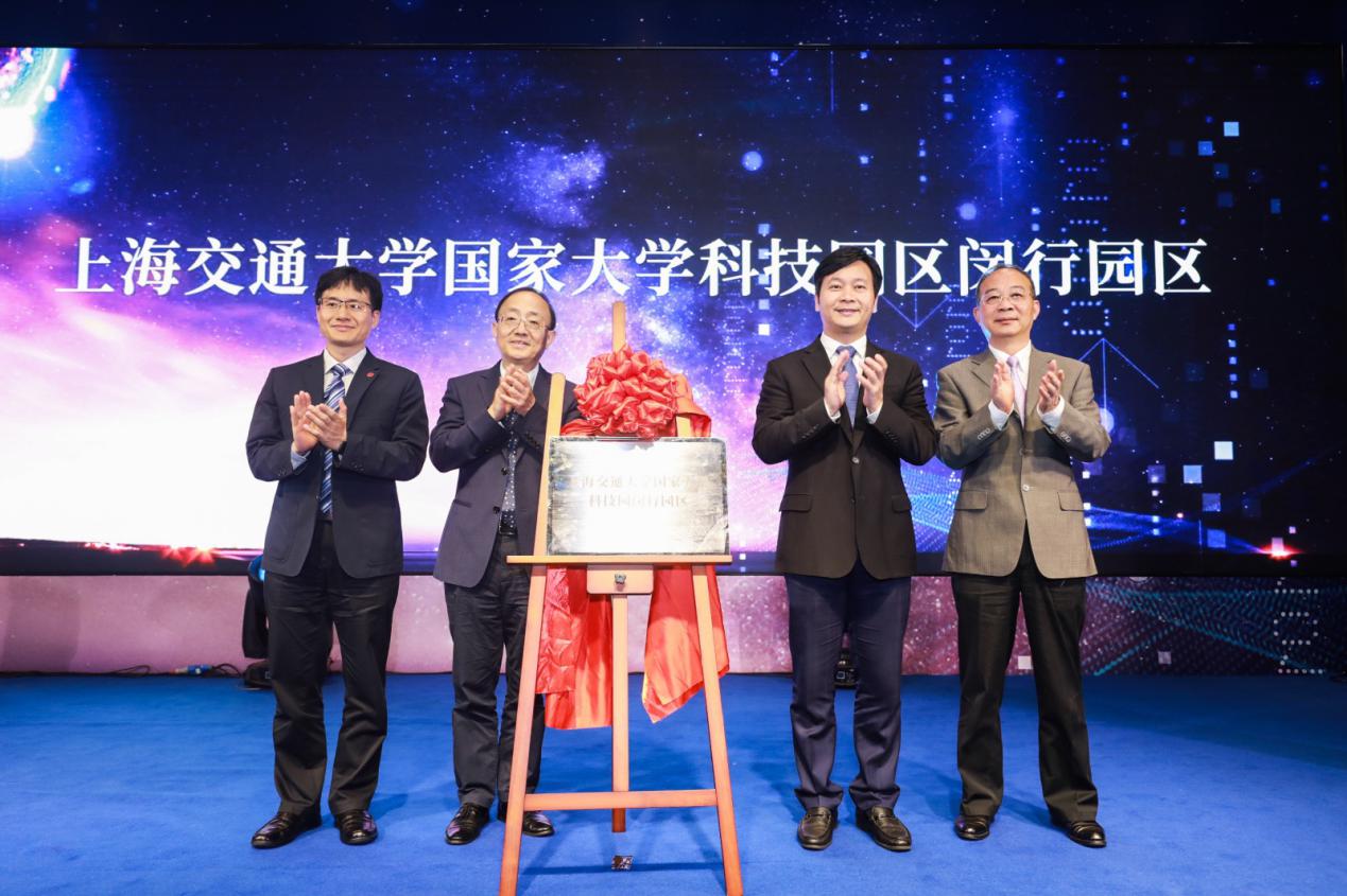 作为本次活动的环节之一,市科委主任张全、市经信委主任吴金城、闵行区区长倪耀明、上海交大副校长王伟明共同为“上海交通大学国家大学科技园闵行园区”揭牌。